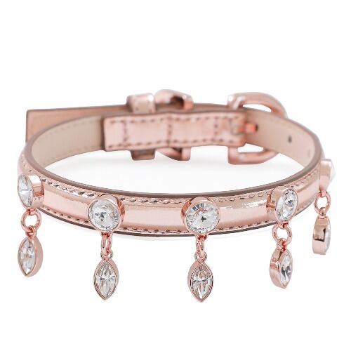 スワロフスキー装飾がポイントのオーダー迷子札付き牛革カラーです♥