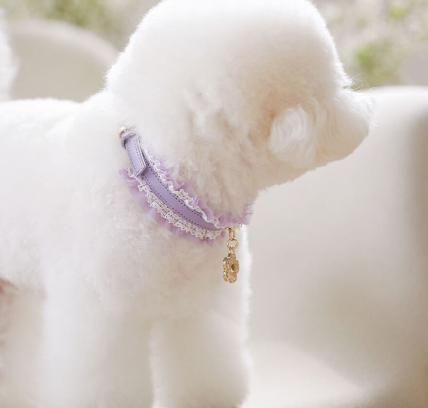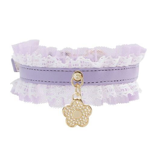 レースとお花のペンダントが可愛いオーダー迷子札付き革製カラーです♥