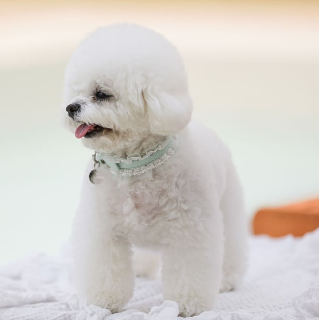 レースが上品なオーダー迷子札付き革製カラーです♥