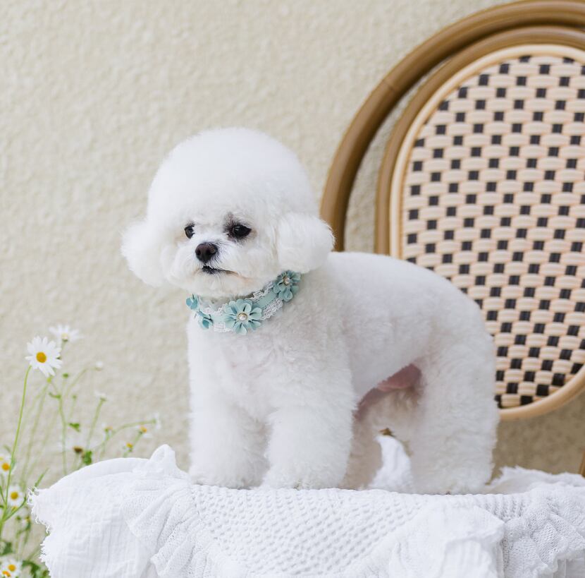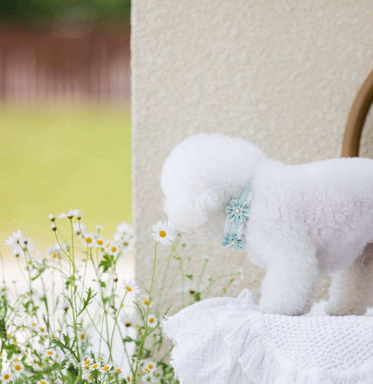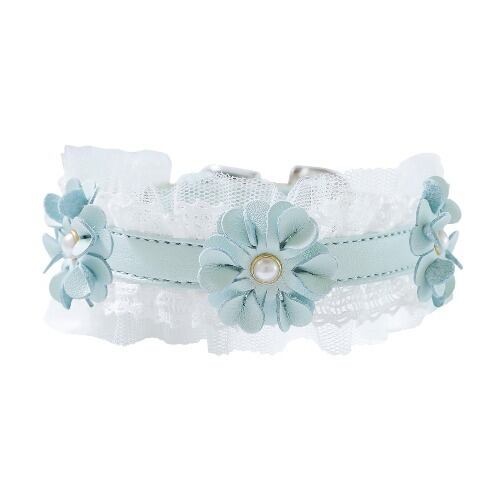 レースとお花のコサージュが可愛いオーダー迷子札付き革製カラーです♥