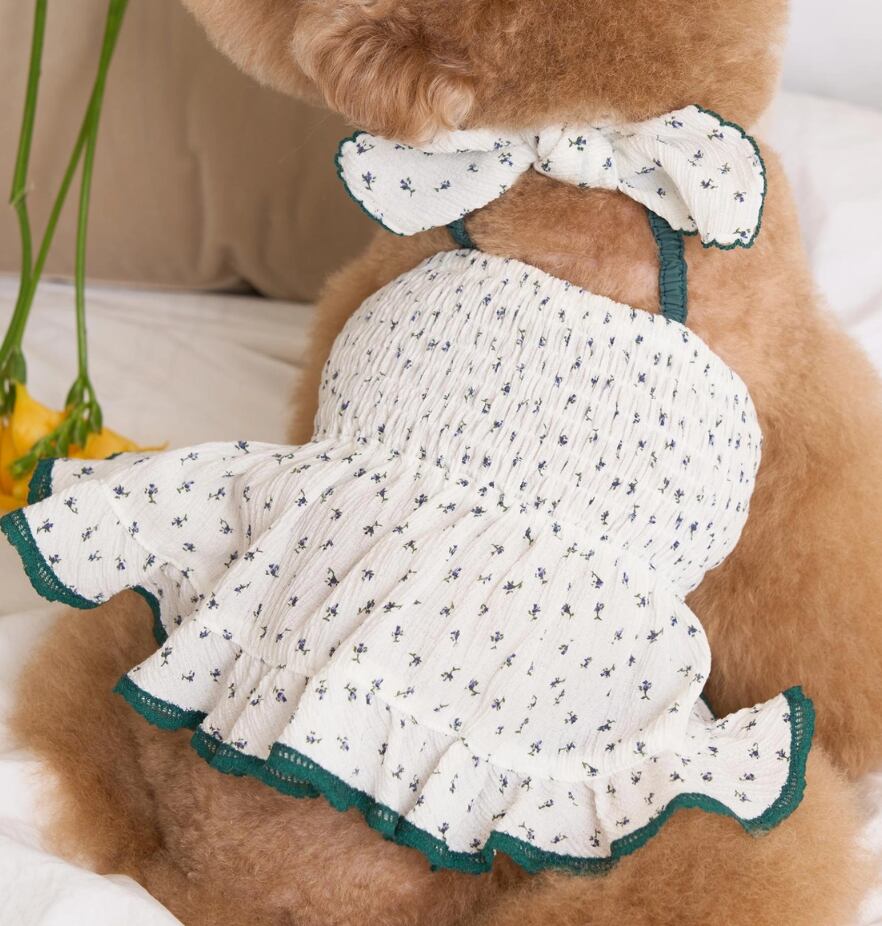 小花柄のプリントと背中のハンカチーフ風リボンで