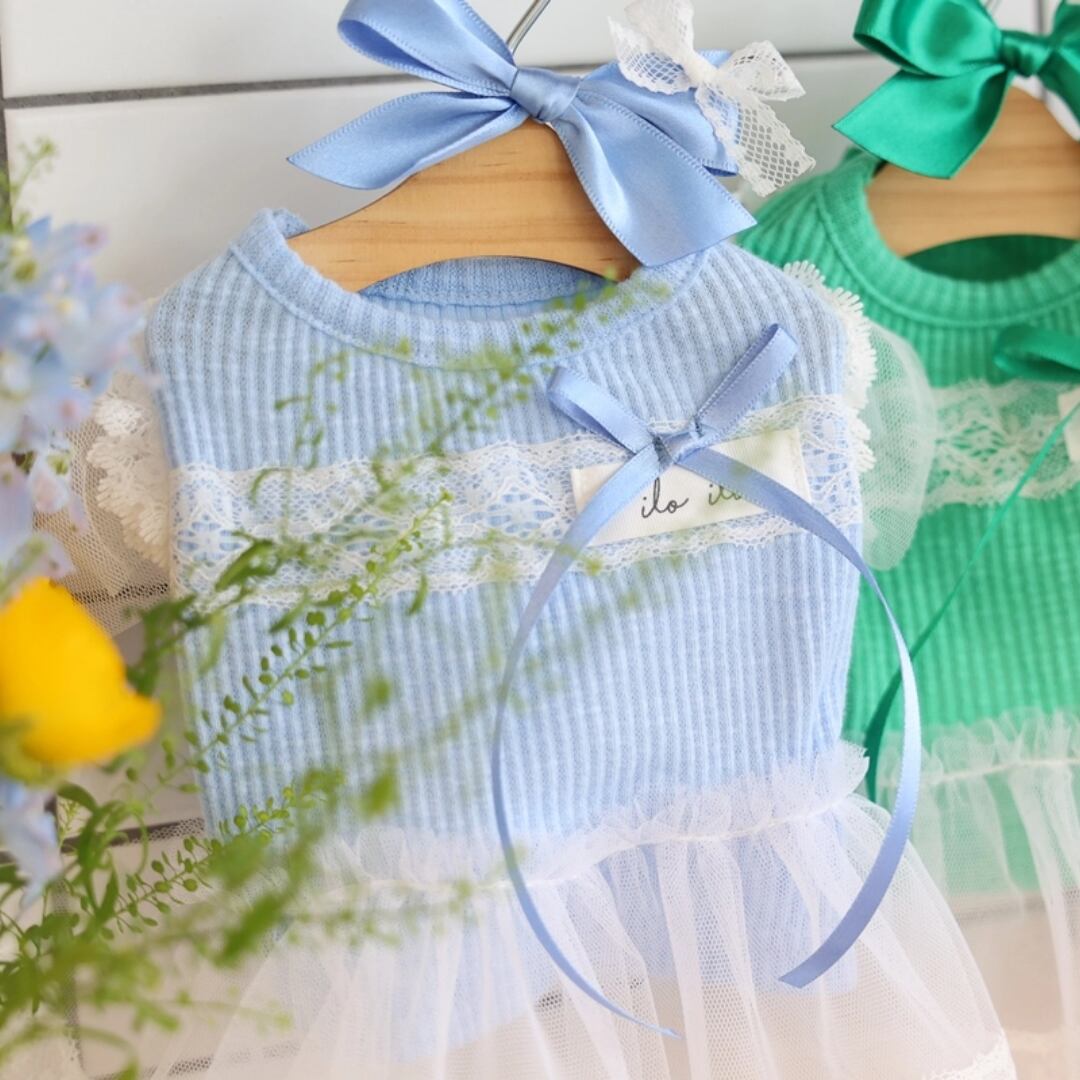 スカートと袖にあしらわれたシアーフリルとレースがポイントに♡