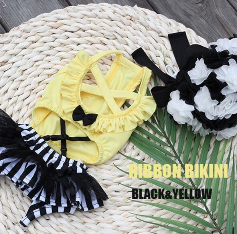 Ribbon bikini ブラック&イエロー