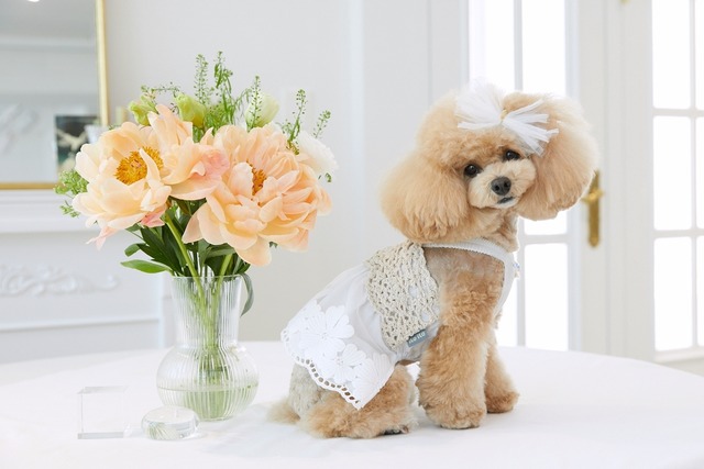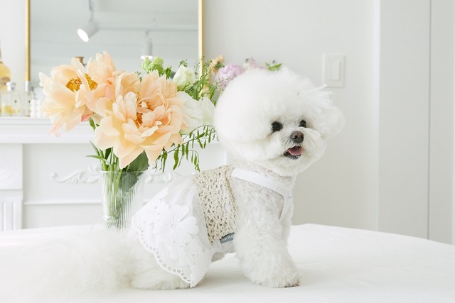 チュールレースフリルの先に刺繍されたお花がポイント♥︎